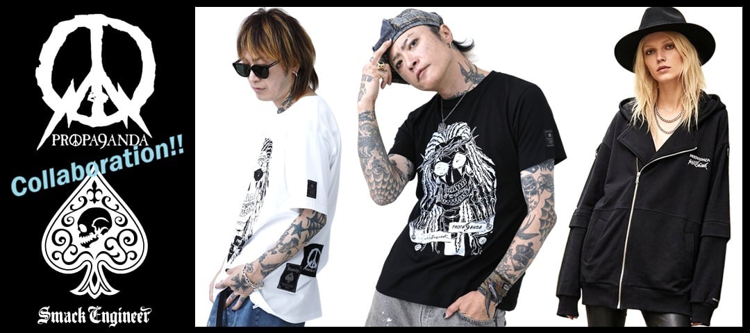 【15%OFF SALE】SMACK ENGINEER × PROPA9ANDA / スマックエンジニア × プロパガンダ「TRICKER LAYERED HOOD RIDERS」限定コラボ ジップアップライダースパーカージャケット オーバーサイズスウェット 黒ブラック スカル ドクロ メンズレディース パンクロック PUNKROCK バンド 衣装 Rogia