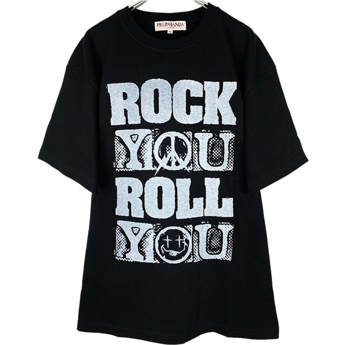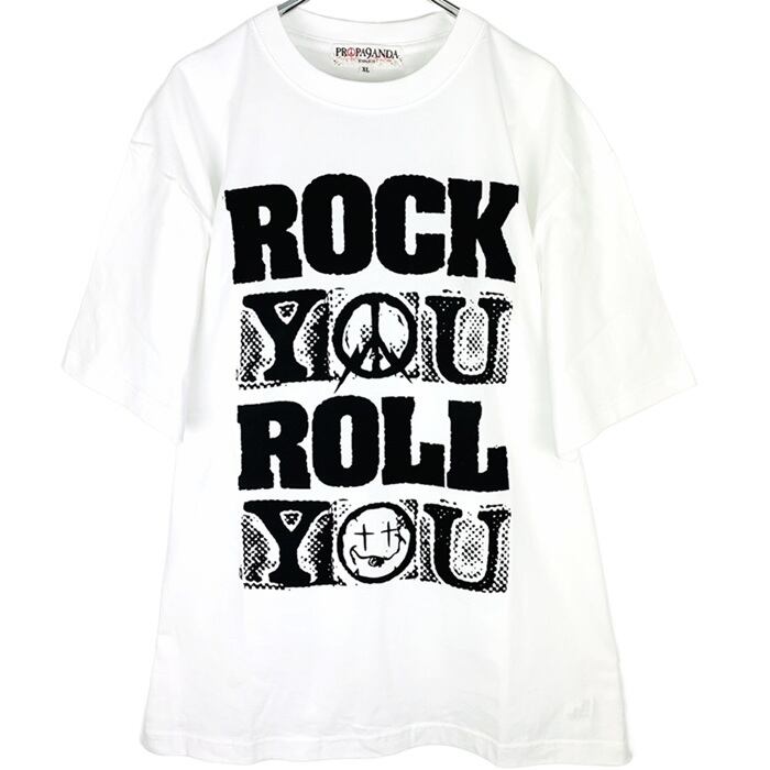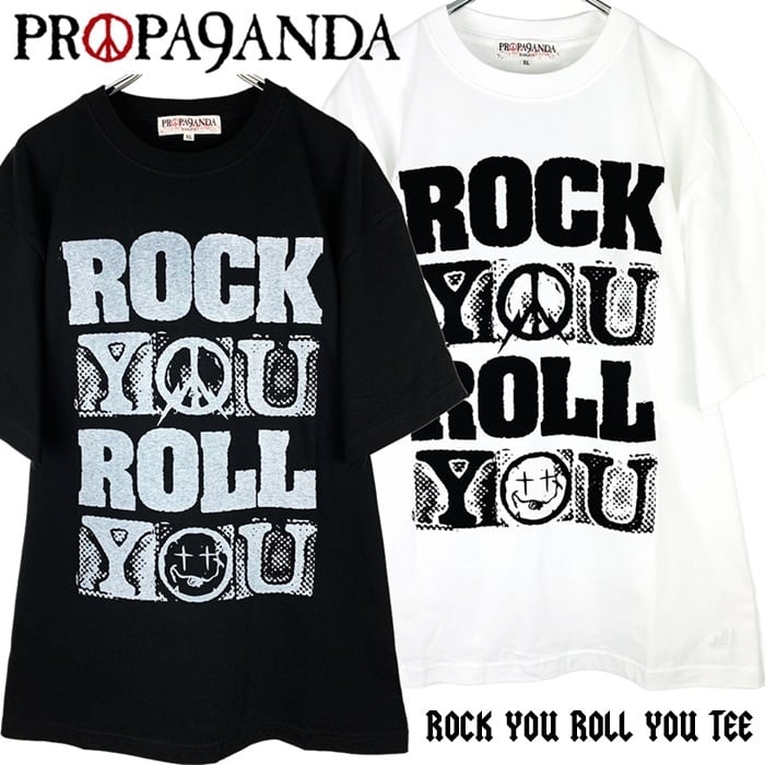 PROPA9ANDA / プロパガンダ「ROCK YOU ROLL YOU TEE」半袖Tシャツ ニコちゃん スマイル 黒 ブラック 白 ホワイト 五分袖 ワンピース プリント クルーネック オーバーサイズ XL メンズ レディース UK パンク ロック PUNK ROCK バンド フェス ギフト無料 ステージ衣装 Rogia