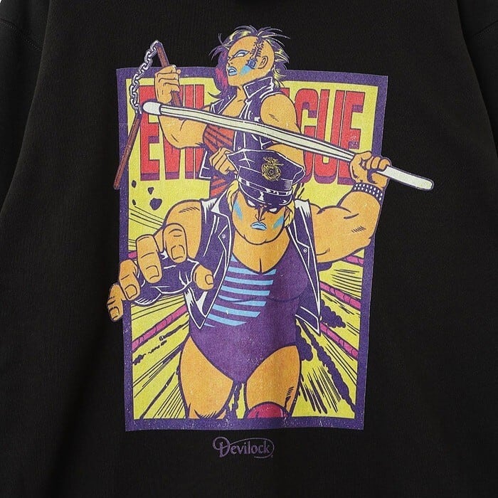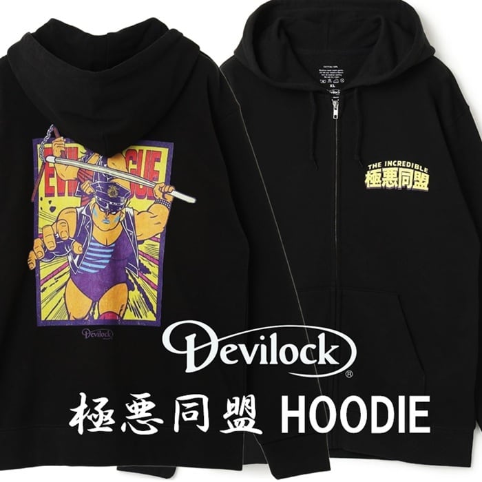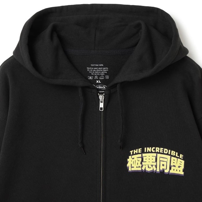 DEVILOCK × 極悪同盟 結成40周年記念 デビロック 限定コラボレーション「極悪同盟 HOODIE」女子プロレス ダンプ松本 極悪女王 ジップアップパーカー ゴッコ堂 GOCCODO 黒 ブラック 2L 3L 4L メンズレディース パンクロック PUNKROCK バンド フェス ステージ衣装 Rogia