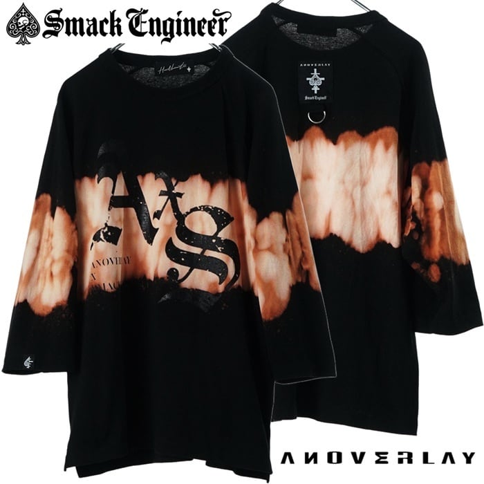 ANOVERLAY (lynch.晁直) × SMACK ENGINEER (スマックエンジニア)「LIGHT AND SHADOW 3/4 SLEEVE」アンオーバーレイ 限定コラボ ブリーチ 7分袖Tシャツ オーバーサイズ 黒ブラック スペード スカル ドクロ メンズレディース PUNKROCK パンクロック バンド ステージ衣装 Rogia