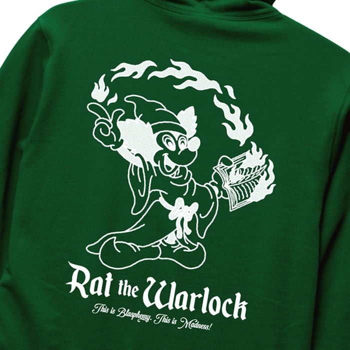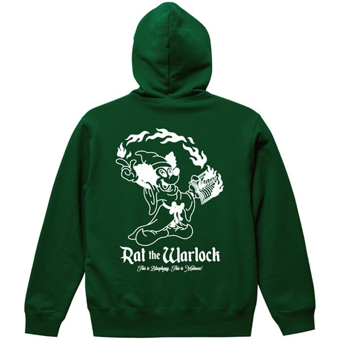 【予約品】SABBAT13 / サバトサーティーン / サバト13「WARLOCK HOODIE」プルオーバーパーカー 裏毛 パイル ネズミ 魔法使い 黒魔術師 黒ブラック 緑グリーン グレー バックプリント スカル ドクロ メンズレディース 大きい 2L 3L パンクロック PUNKROCK バンド ステージ衣装 Rogia