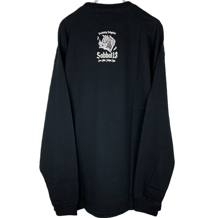 SABBAT13 / サバトサーティーン / サバト13「WARLOCK L/S T」ロンT 長袖Tシャツ ネズミ ラット 魔法使い 黒魔術師 黒白 ブラック ホワイト バックプリント スカル ドクロ メンズレディース 大きい 2L 3L パンクロック PUNKROCK バンド フェス ギフト ステージ衣装 Rogia