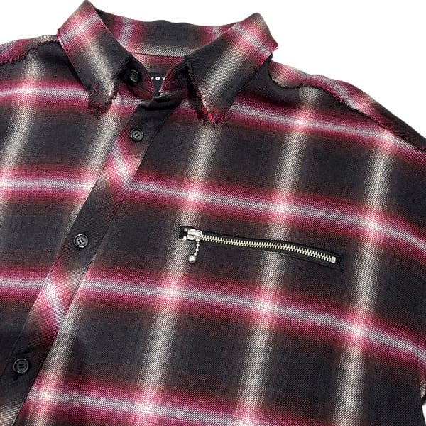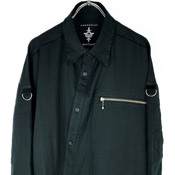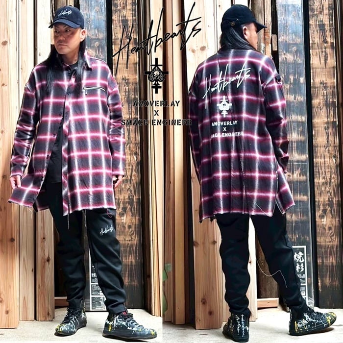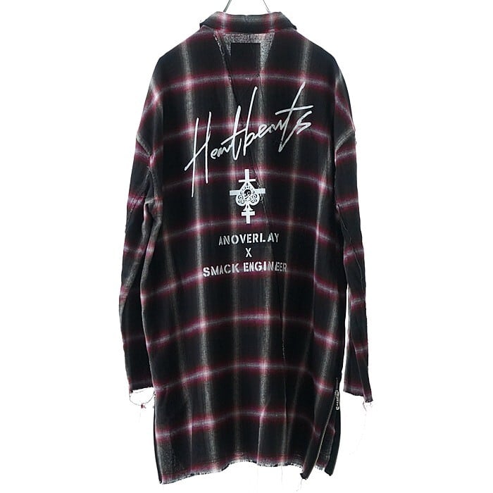 ANOVERLAY (lynch.晁直) × SMACK ENGINEER (スマックエンジニア)「OBLIQUE SHIRTS COAT」アンオーバーレイ 限定コラボ シャツコート ロングシャツ オーバーサイズ 黒ブラック 赤チェック スペード スカル メンズレディース PUNKROCK パンクロック バンド ステージ衣装 Rogia