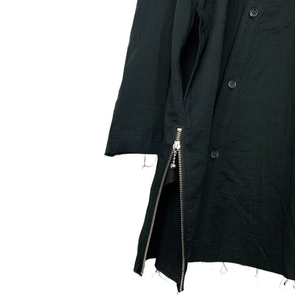 前立てをナナメに配した裁ち切り仕様のシャツコート。