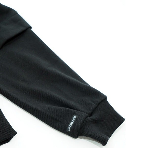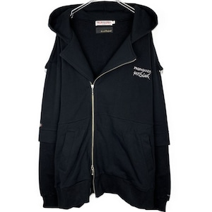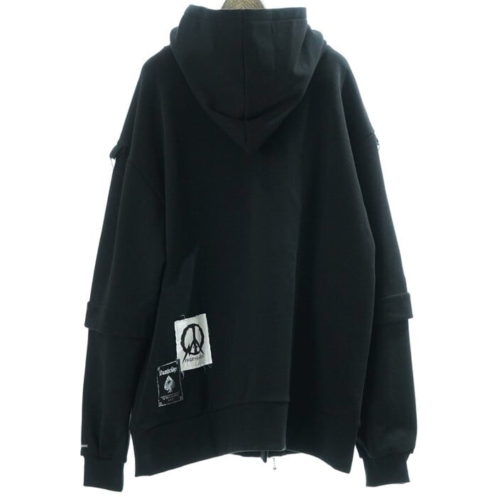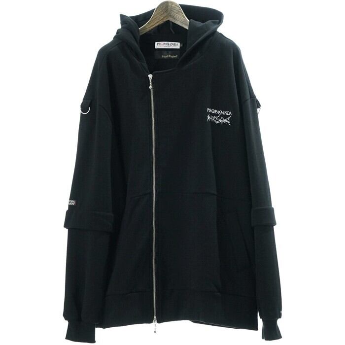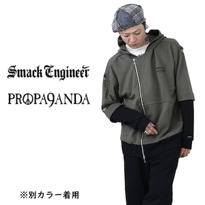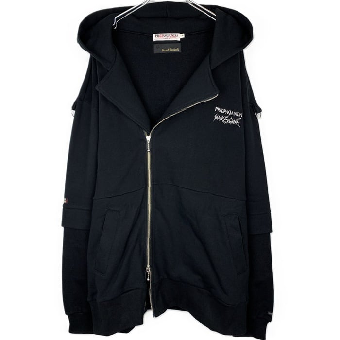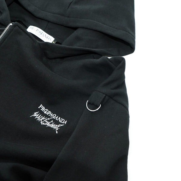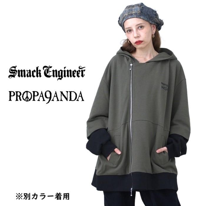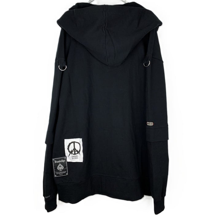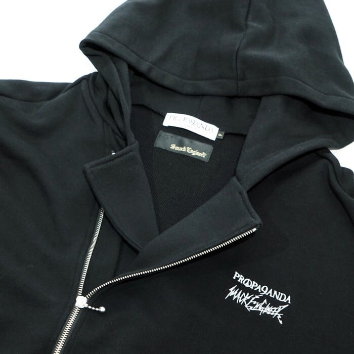 SMACK ENGINEER × PROPA9ANDA / スマックエンジニア × プロパガンダ「TRICKER LAYERED HOOD RIDERS」限定コラボ ジップアップライダースパーカー オーバーサイズ 裏毛パイルスウェット 黒ブラック スカルドクロ メンズレディース パンクロック PUNKROCK ステージ衣装 Rogia