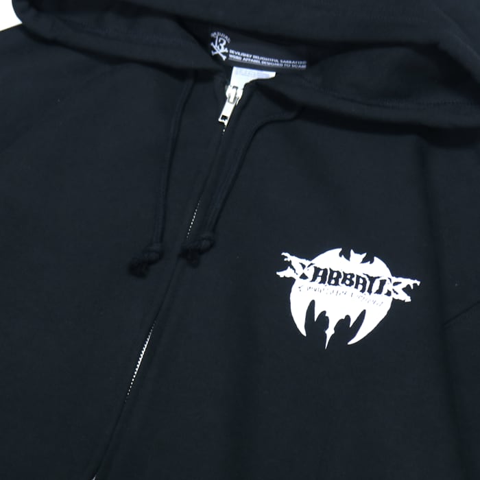 SABBAT13 / サバトサーティーン / サバト13「VAMP BAT ZIP-HOODIE」ジップアップパーカー 裏毛パイルスウェット 黒ブラック メンズレディース 大きい コウモリ バットマン オーバーサイズ スケーター バックプリント PUNKROCK パンクロック バンド ステージ衣装 フェス Rogia