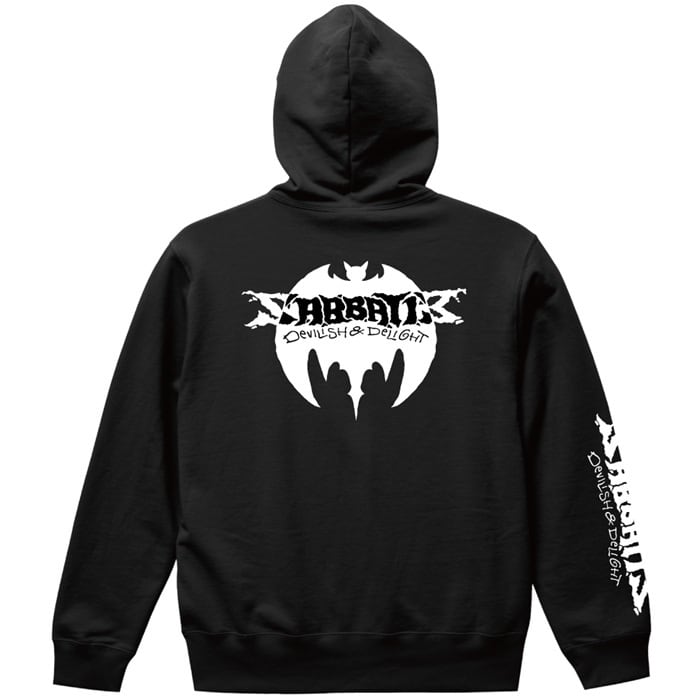 【予約品】SABBAT13 / サバトサーティーン / サバト13「VAMP BAT ZIP-HOODIE」ジップアップパーカー 裏毛 パイルスウェット 黒ブラック コウモリ バットマン オーバーサイズ スケーター バックプリント メンズレディース PUNKROCK パンクロック バンド ステージ衣装 Rogia