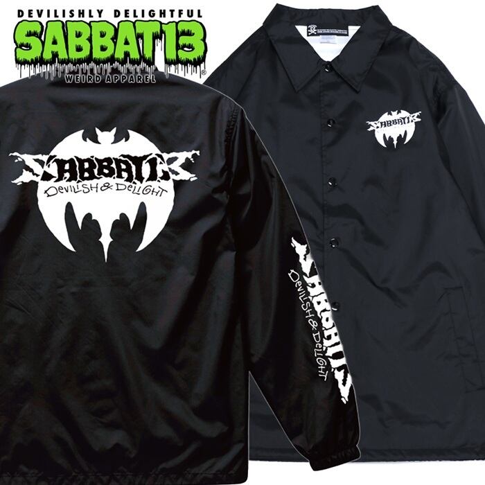 SABBAT13 / サバトサーティーン / サバト13「VAMP BAT COACH JKT」コーチジャケット ナイロンジャンパー 黒 ブラック メンズ レディース コウモリ バットマン オーバーサイズ スケーター ストリート バックプリント PUNKROCK パンクロック バンド ステージ衣装 フェス Rogia