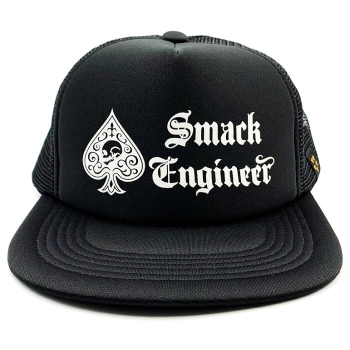 SMACK ENGINEERのロゴとマークを配した、ストレートなメッシュキャップです。