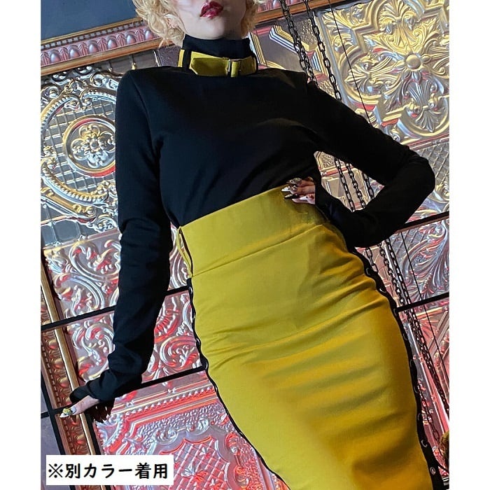 ストレッチ性の強いハイテンションポンチを使用したペンシルスカート。